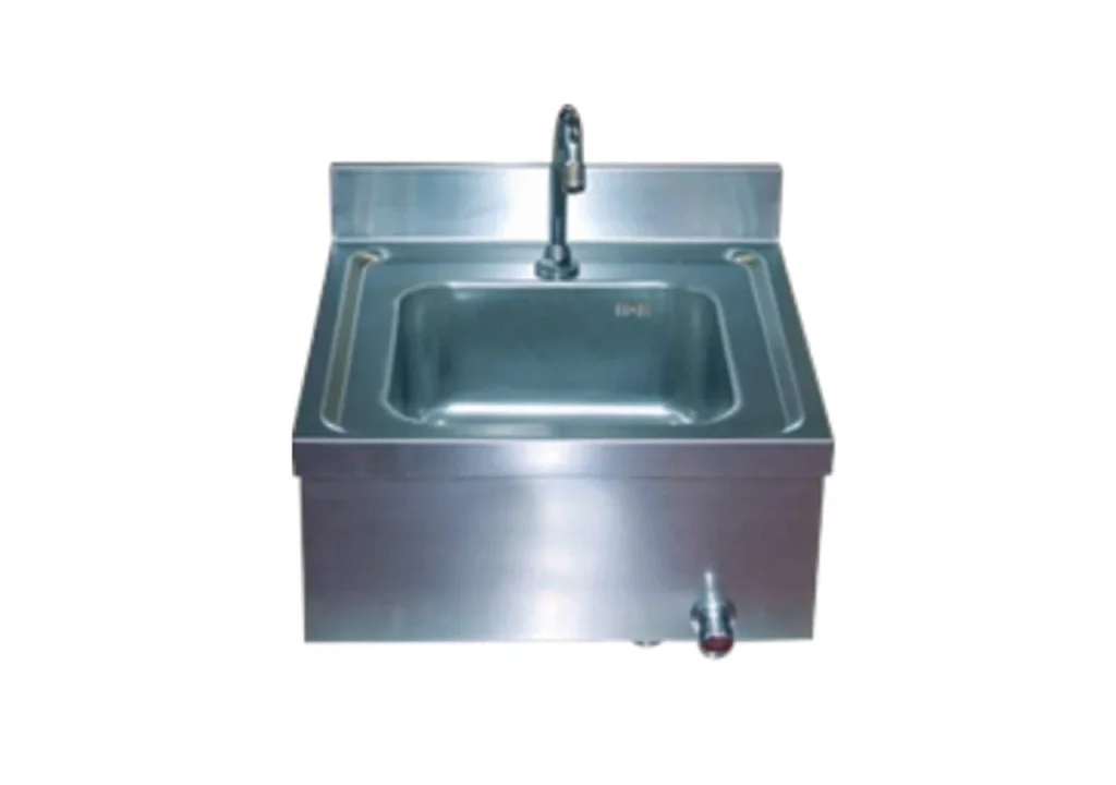 LAVELLO IGIENICO Lavello interamente costruito in acciaio inox AISI 304 su colonnina, completo di: • Rubinetto miscelatore; • Portasapone – dosatore inox.