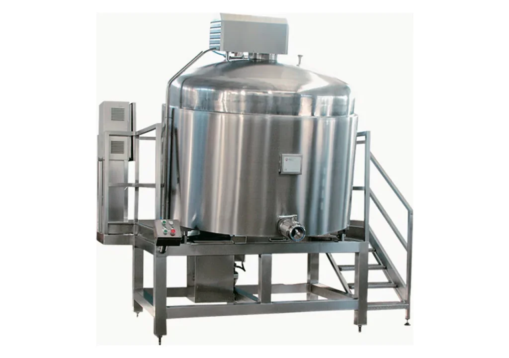 Vasca polivalente su palco con fondo e parete riscaldati in acciaio inox AISI 304. Capacità: da 500-2000 litri.